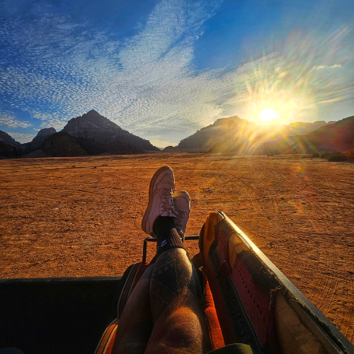 Sveglia prestissimo , saliamo sul nostro van con il grande Dhyab , verso il Wadi Rum direzione campo tendato per assaporare tutti insieme la vita Berbera e godere dei colori e del cielo stellato del deserto giordano.