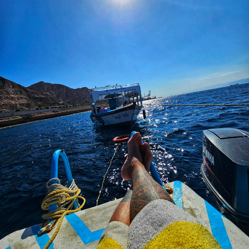Arrivati ad Aqaba decidiamo tutti insieme di procurarci un buon pranzo al sacco con la focaccia tipica di Aqaba e saliamo su due chiatte locali per una mezza giornata di navigazione tra barriera corallina e sole e qualche tuffo di qualche temerario come #gundutravelife .
