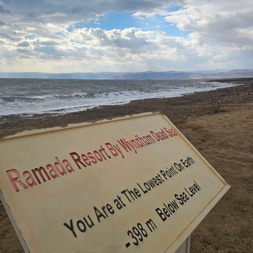 Arriviamo per pranzo sul Mar Morto ,a 398 metri sotto il livello del mare .